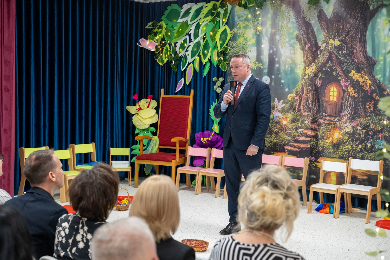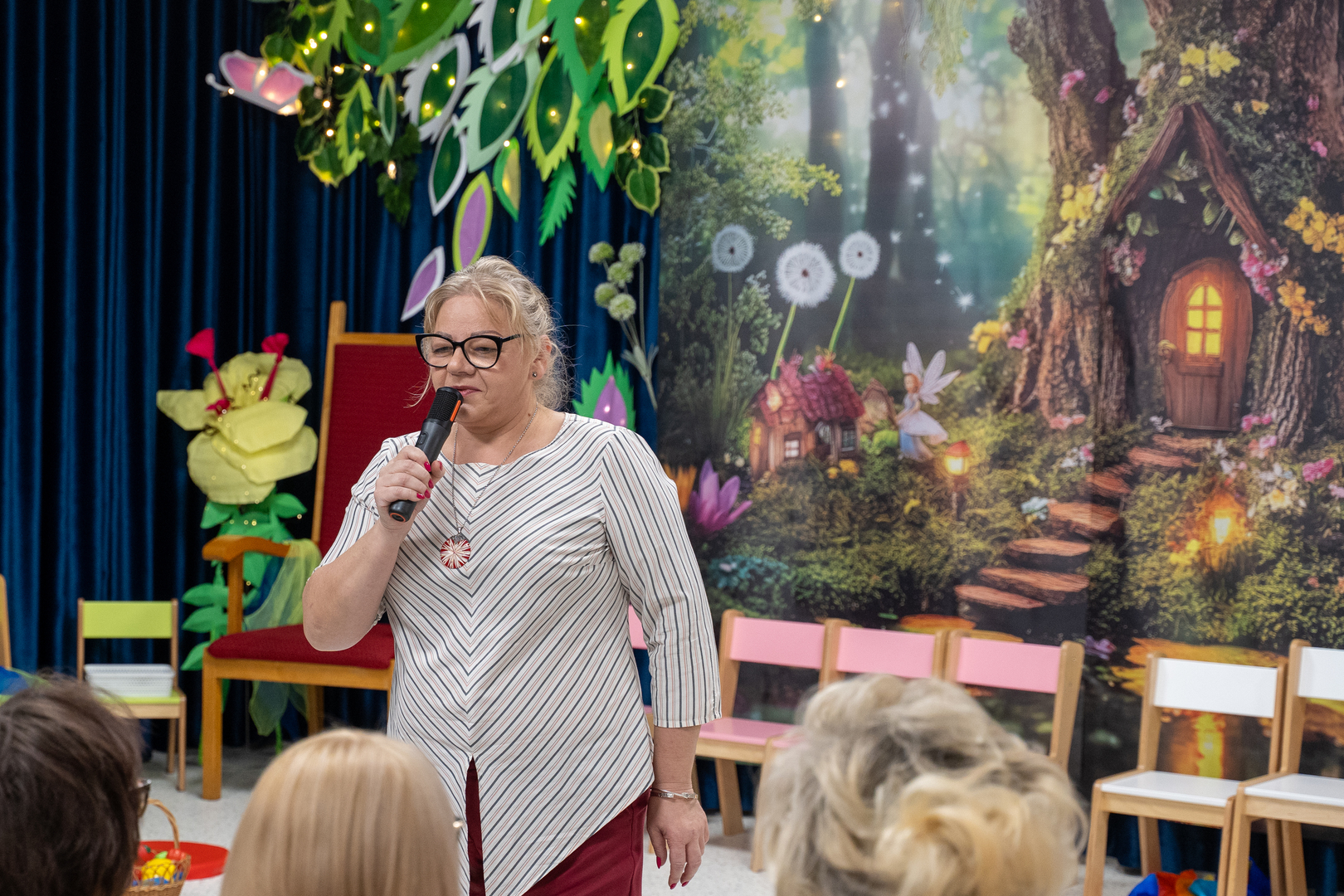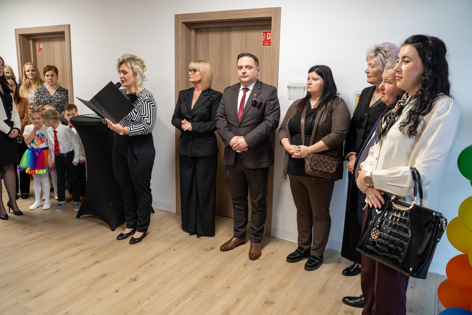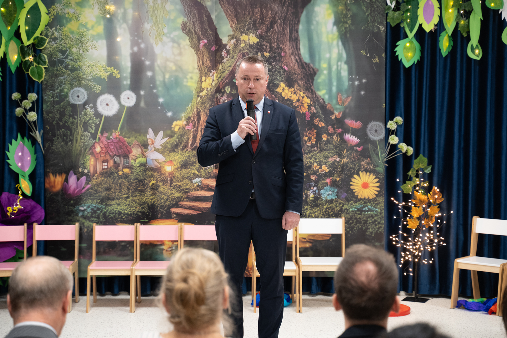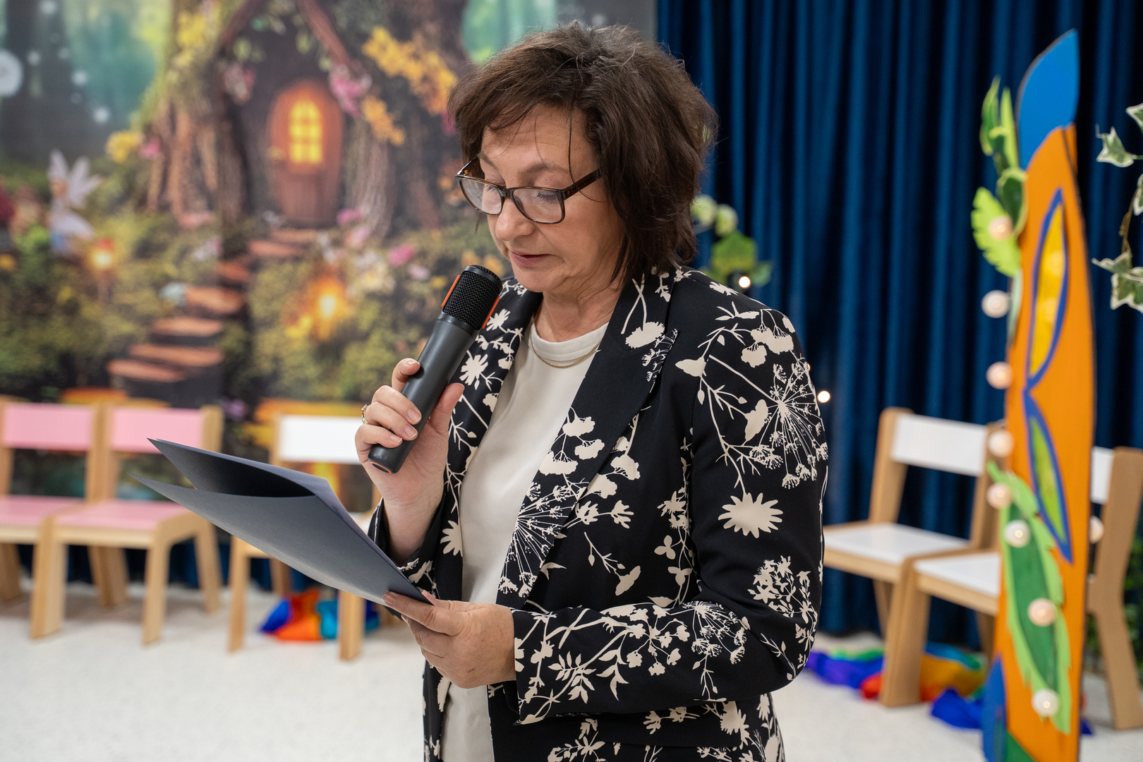 Dyrektor placówki, Wioleta Chołast, przywitała wszystkich gości i podziękowała osobom, które przyczyniły się do realizacji inwestycji. Szczególne słowa wdzięczności skierowała do Wojewody Lubelskiego Krzysztofa Komorskiego i Burmistrza Łęcznej Leszka Włodarskiego za wsparcie, determinację i troskę o rozwój edukacji przedszkolnej w mieście.