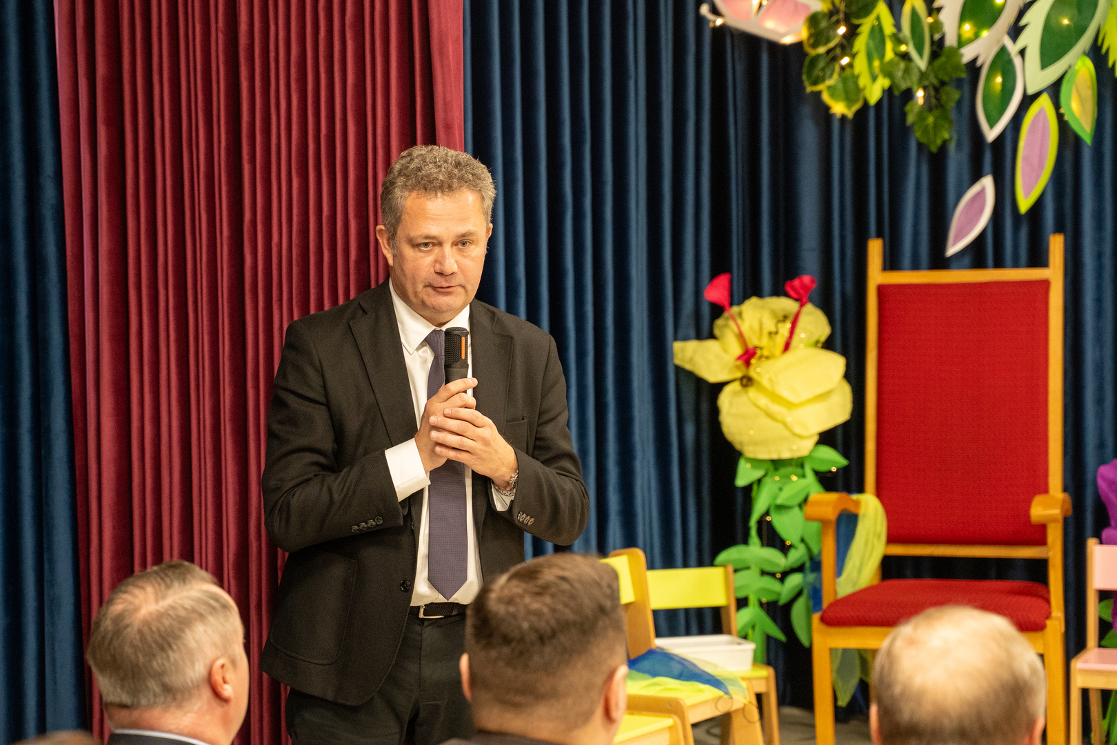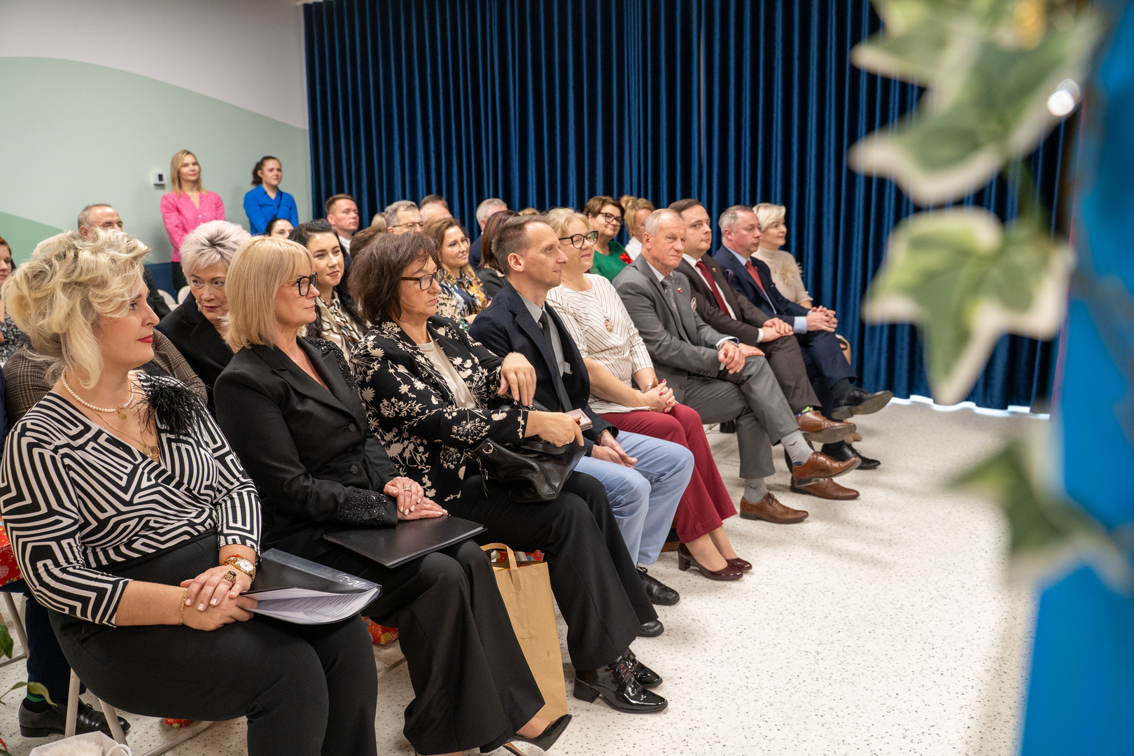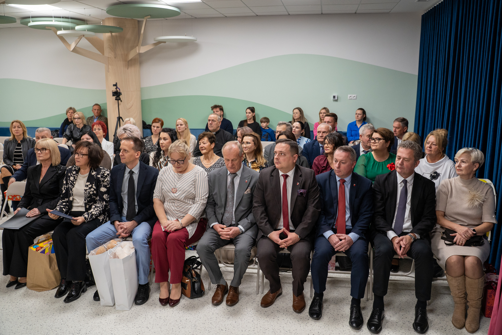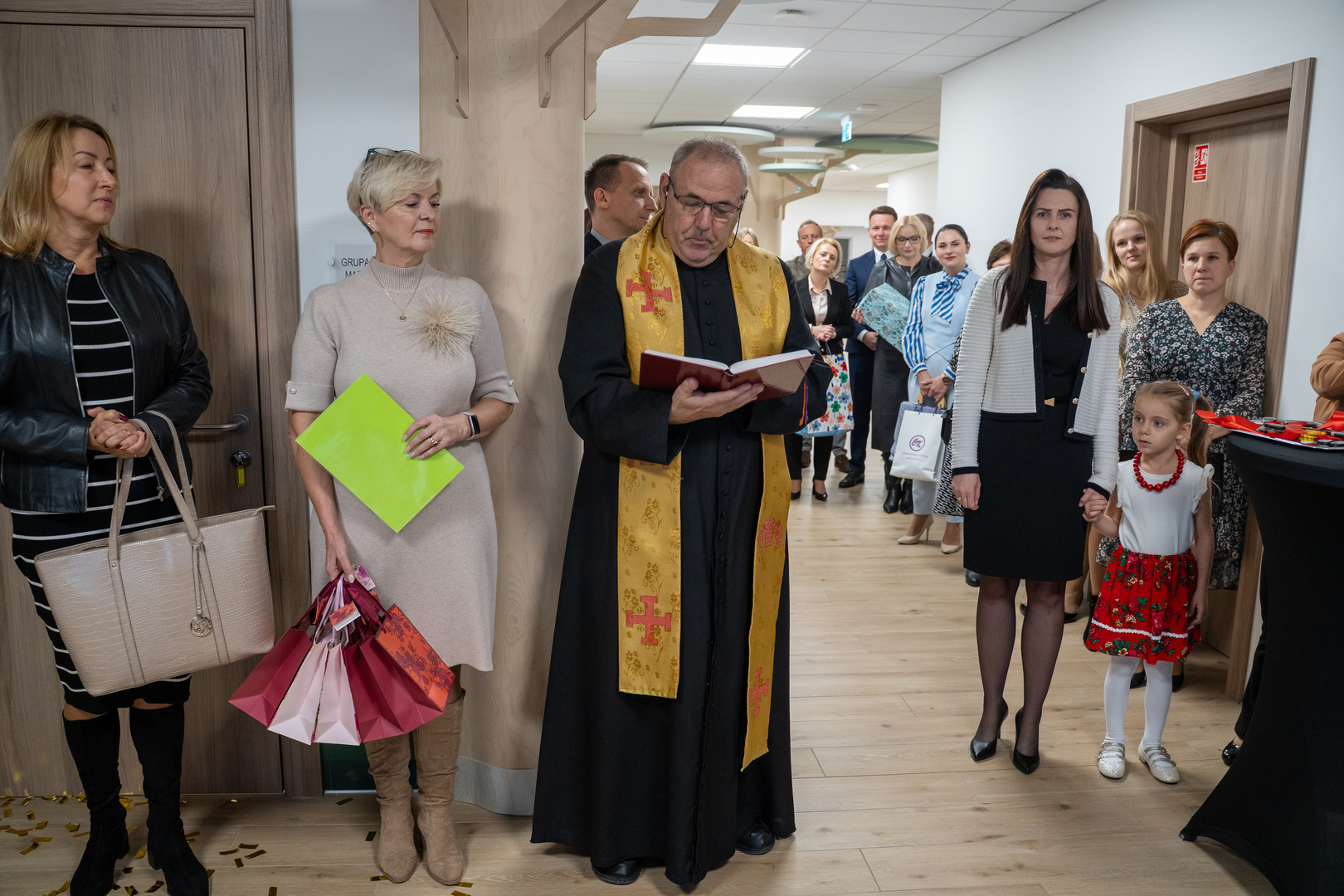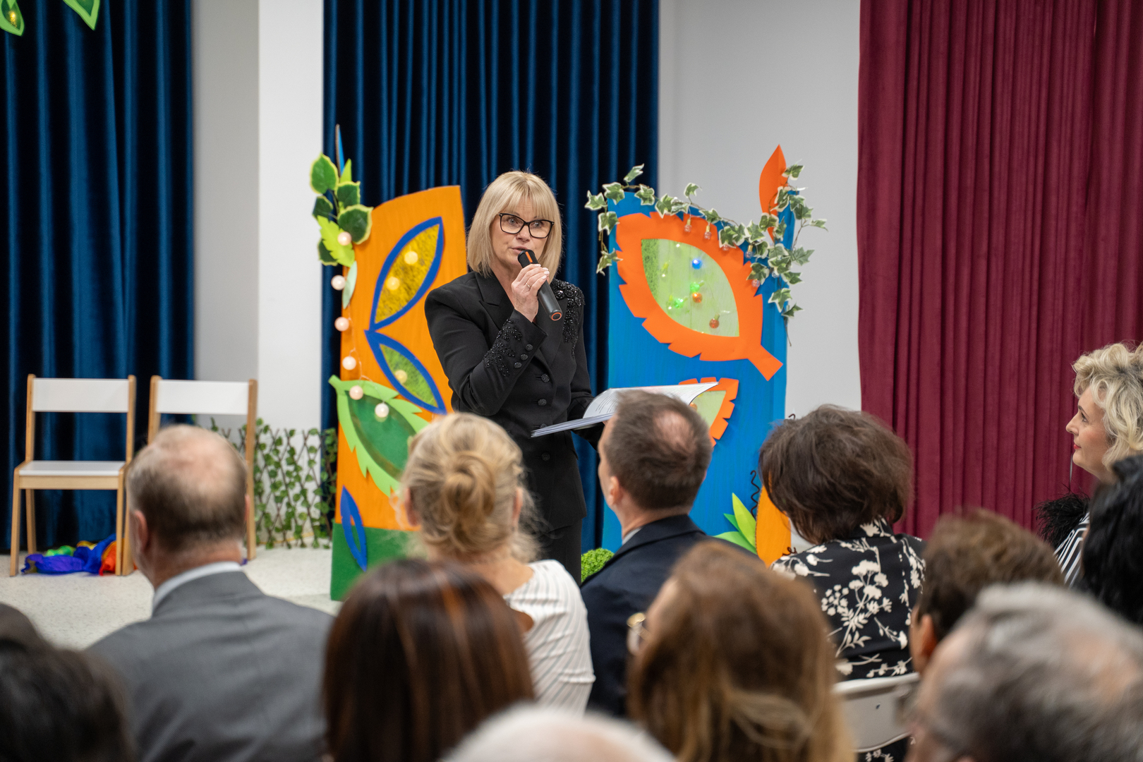 Dyrektor placówki, Wioleta Chołast, przywitała wszystkich gości i podziękowała osobom, które przyczyniły się do realizacji inwestycji. Szczególne słowa wdzięczności skierowała do Wojewody Lubelskiego Krzysztofa Komorskiego i Burmistrza Łęcznej Leszka Włodarskiego za wsparcie, determinację i troskę o rozwój edukacji przedszkolnej w mieście.