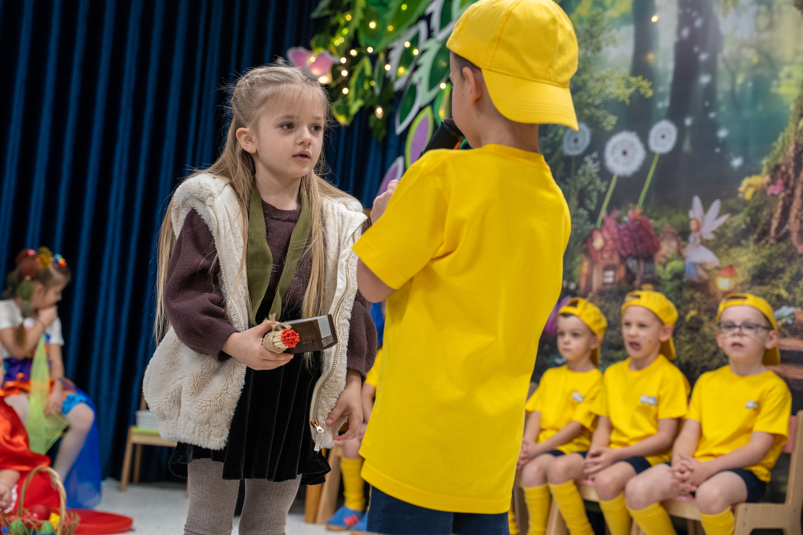 W części artystycznej wystąpiły przedszkolaki w programie „Witajcie w naszej bajce”, przygotowanym przez nauczycielki: Agnieszkę Pietrzak, Wiolettę Magdziarz-Kaszewską i Annę Gdulę. Nie zabrakło braw, uśmiechów i wzruszeń.