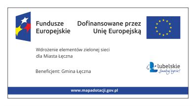Projekt „Wdrożenie elementów zielonej sieci dla Miasta Łęczna” jest dofinansowany ze środków Europejskiego Funduszu Rozwoju Regionalnego w programie Fundusze Europejskie dla Lubelskiego 2021-2027.