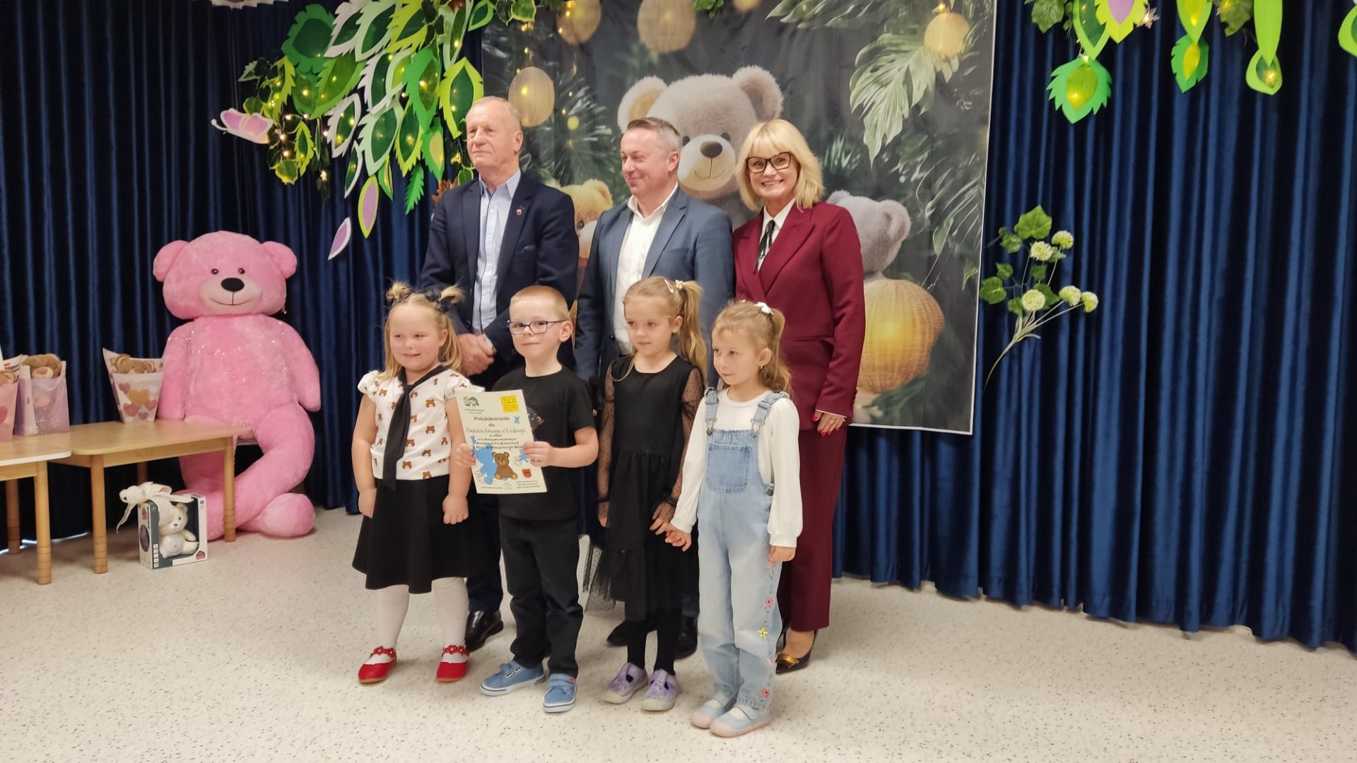 Podczas wydarzenia dzieci z grup „Króliki” i „Mądre Sowy” zaprezentowały krótkie przedstawienie przybliżające historię pluszowego misia — skąd się wziął, dlaczego stał się jedną z najbardziej rozpoznawalnych i lubianych zabawek oraz jak na przestrzeni lat zdobył serca najmłodszych. Uczestnicy obejrzeli również językowy przerywnik w języku angielskim i hiszpańskim, przygotowany w towarzystwie dużego pluszowego misia.