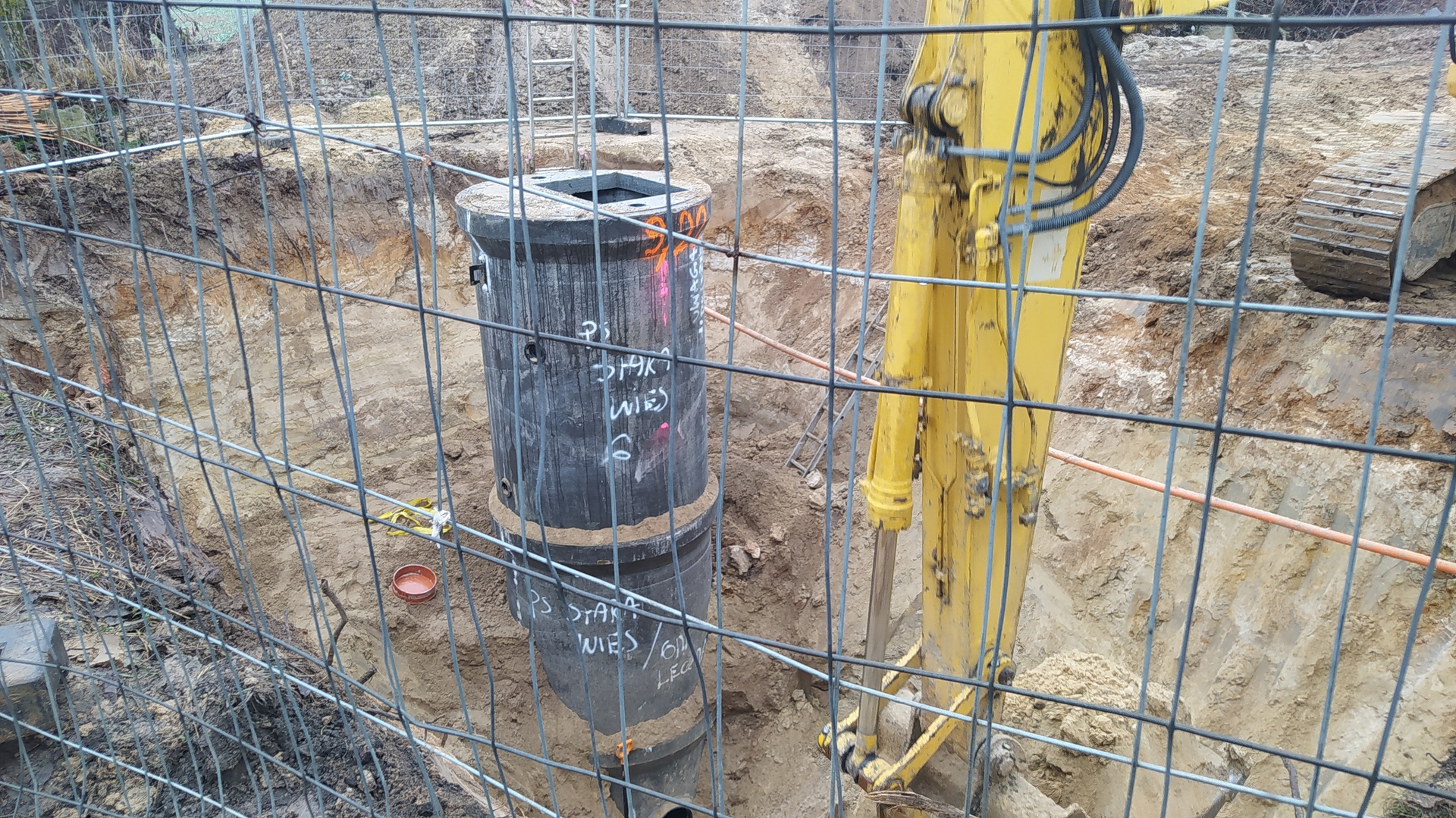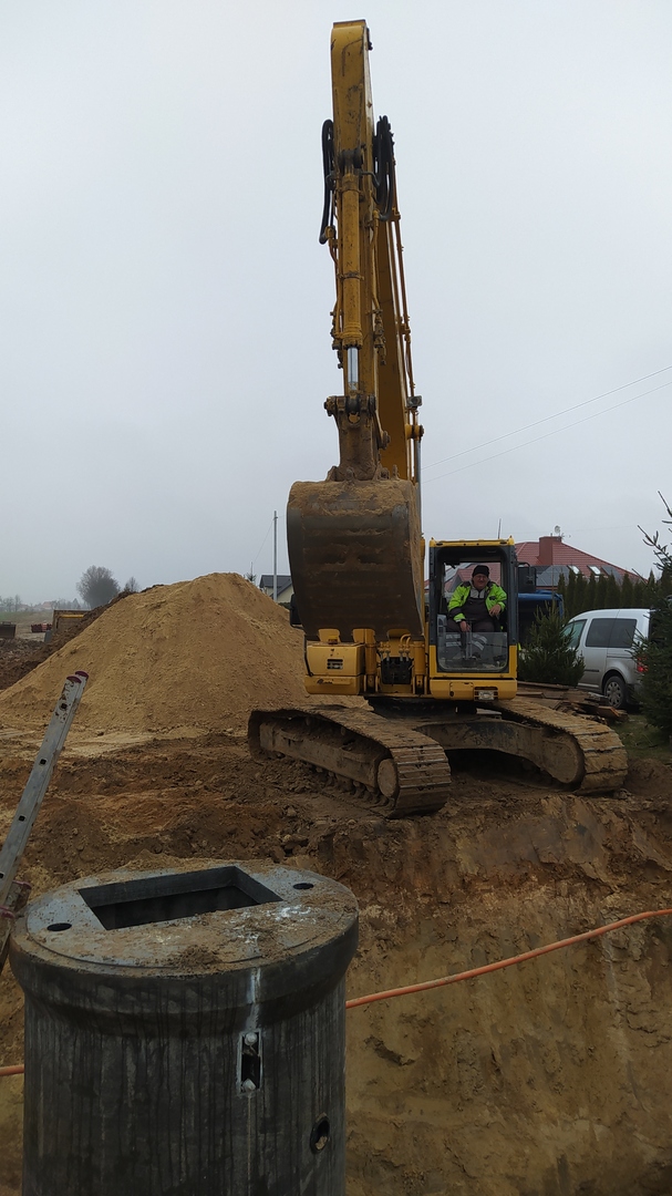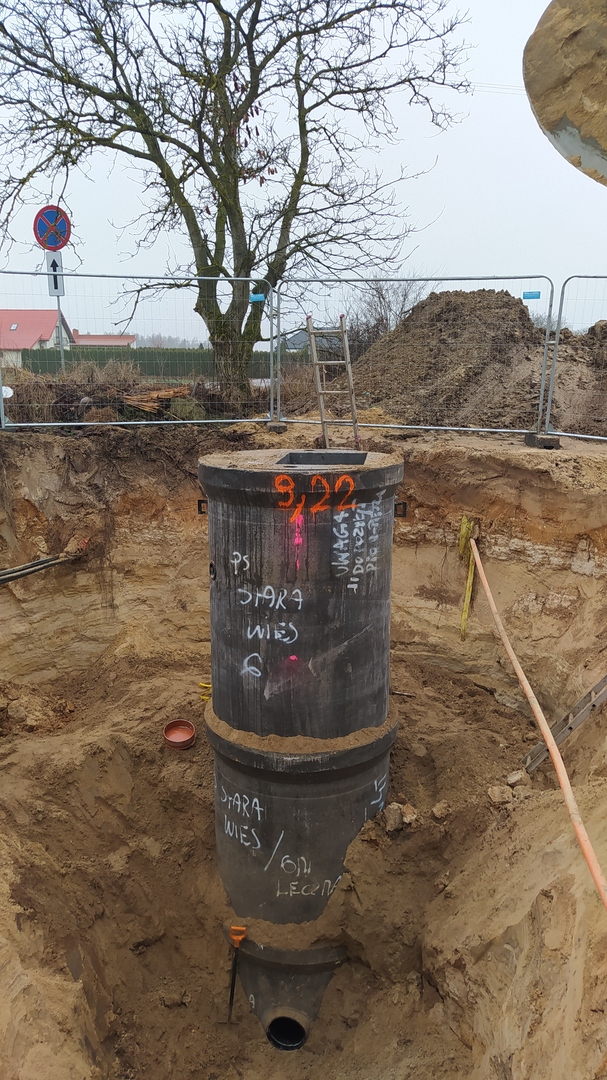Zapraszamy do zapoznania się z krótką fotorelacją z postępu prac przy budowie kanalizacji w Starej Wsi oraz Starej Wsi Stasin. Podczas dzisiejszej wizyty na placu budowy mogliśmy obserwować montaż przepompowni ścieków – jednego z kluczowych elementów przyszłej infrastruktury.