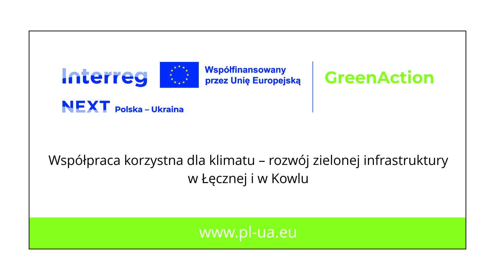 Projekt pn. „Współpraca korzystna dla klimatu – rozwój zielonej infrastruktury w Łęcznej i w Kowlu” jest finansowany ze środków Unii Europejskiej w ramach Programu Interreg NEXT Polska – Ukraina 2021-2027.