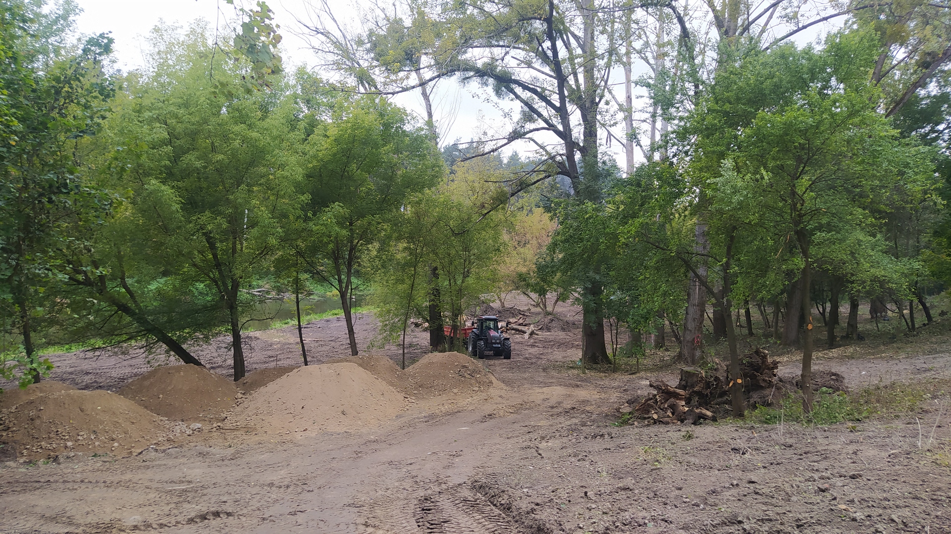 Trwają prace porządkowe i przygotowawcze. Usuwane są chwasty i zakrzaczenia oraz zabezpieczane drzewa. Wykonano także drogi techniczne, aby możliwy był dojazd w pobliże rzeki. Prace porządkowe odsłoniły nadwieprzańskie skarpy i dawny układ ścieżek i dróg. Stały się także okazją do usunięcia wyrzucanych przez lata śmieci i odpadów.